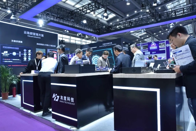 在本屆LED CHINA上,灰度科技展出了可視化控制方案、云集群管理方案、LCD異形屏拼接方案、無線投屏方案及配套軟硬件設(shè)備。灰度科技顯示控制方案憑借獨(dú)特的技術(shù)優(yōu)勢和應(yīng)用潛力,吸引著眾多專業(yè)觀眾、外國友人、前來駐足、參觀、咨詢。目前,灰度顯示控制解決方案已應(yīng)用在會議顯示、指揮控制、信息展示、商業(yè)廣告、文化體育、教育醫(yī)療、視頻監(jiān)控、演藝演播、影音娛樂等領(lǐng)域。充分展示了灰度科技全場景的深度布局。