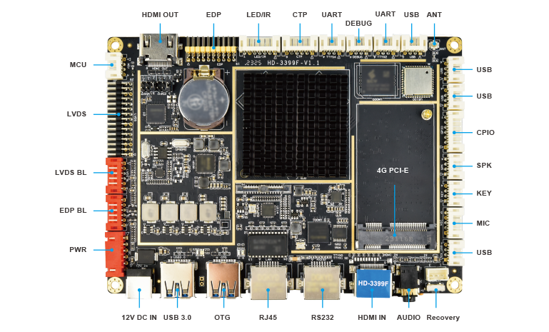 4×USB 2.0、2×TTYS GPIO、PCIe、RTC、IR