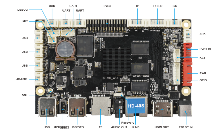 4×USB 2.0、4×UART、 GPIO、RTC、IR