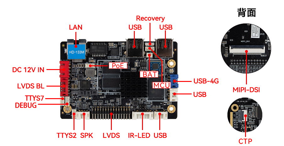 USB 2.0 HOST、USB OTG 2.0、3×USB 2.0、
